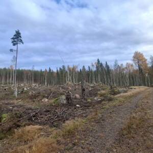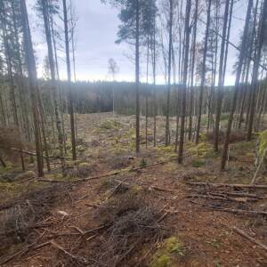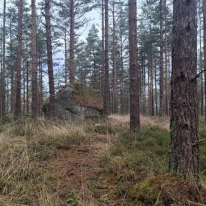 Jadąc z Kristinehamn w kierunku Örebro, początkowo planowałem zaparkować samochód na Rastplats Ristjärn, ale GPS poprowadził mnie inaczej i skręciłem kilometr wcześniej. Na mapie wyglądało i GPS pokazywał, że dojadę boczną drogą do parkingu, jednak po przejechaniu nieco ponad kilometra na drodze natknąłem się na wysypany stos kamieni, który uniemożliwiał dalszą jazdę. Postanowiłem na szczyt iść stamtąd pieszo i po kilometrze dotarłem do miejsca, gdzie na sporym terenie prowadzono wycinkę lasu. Przeszedłem około 200 metrów przez tę przestrzeń, a następnie kolejne 250–300 metrów przez las. Doszedłem do wielkiego bloku skalnego, który wyróżniał się wielkością wśród innych głazów narzutowych. Miał co najmniej 3 metry wysokości. To właśnie na nim znajdował się najwyższy punkt kulminacyjny w gminie.