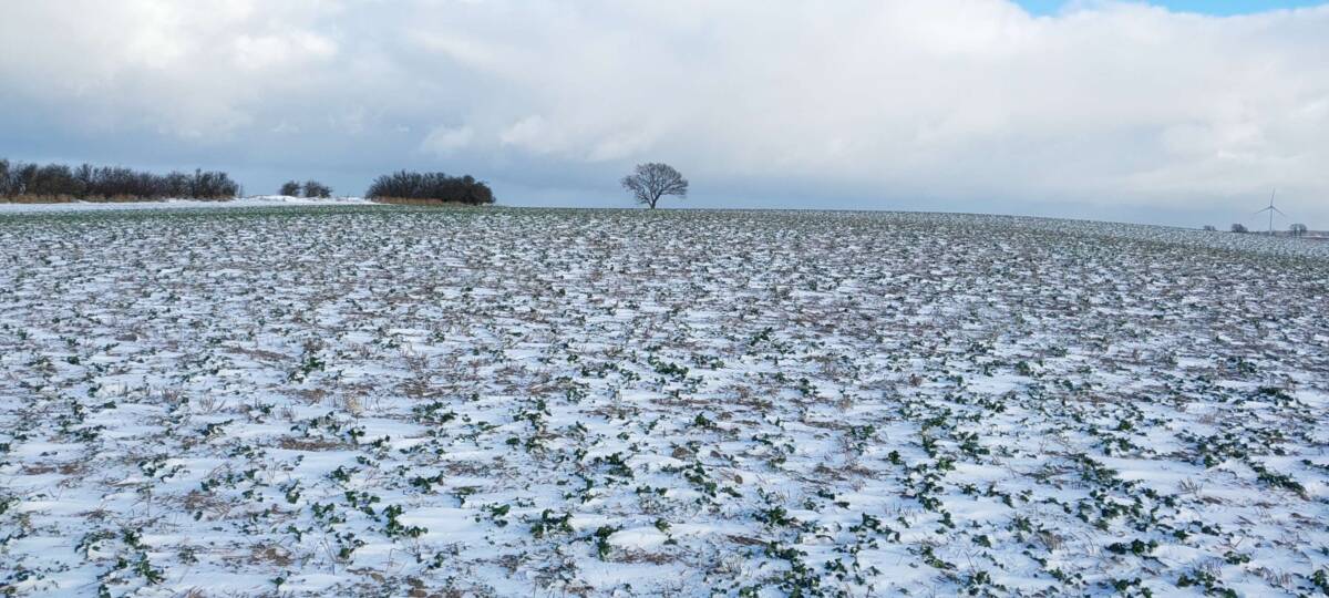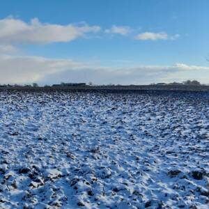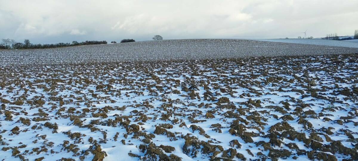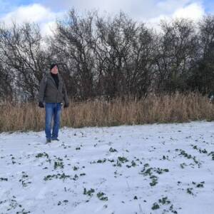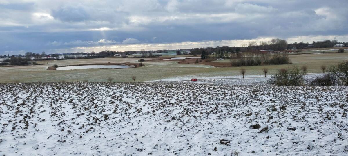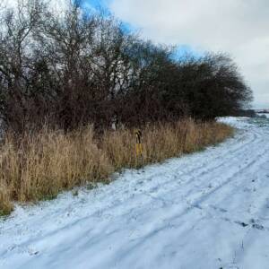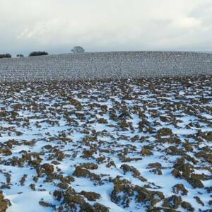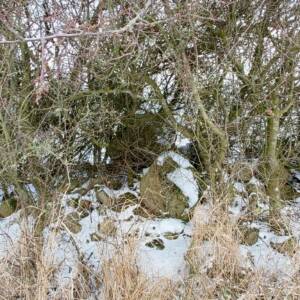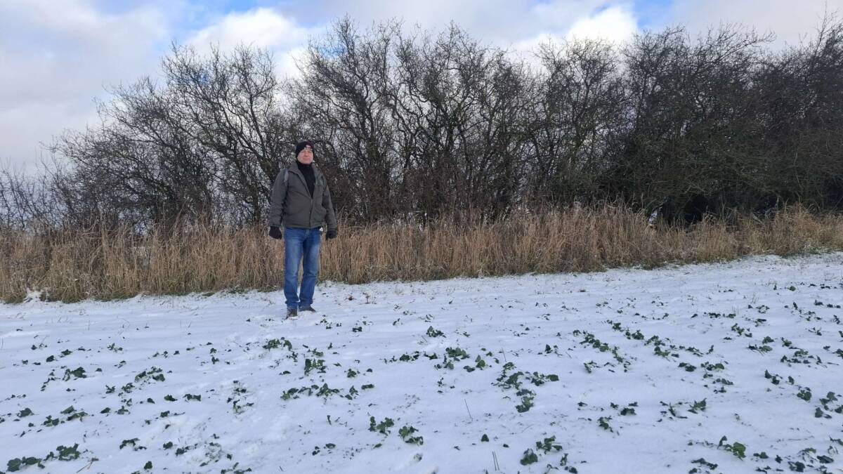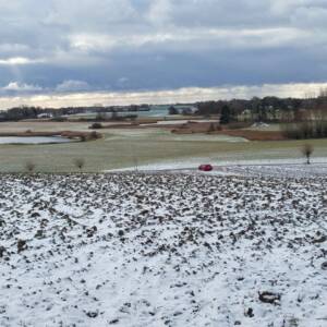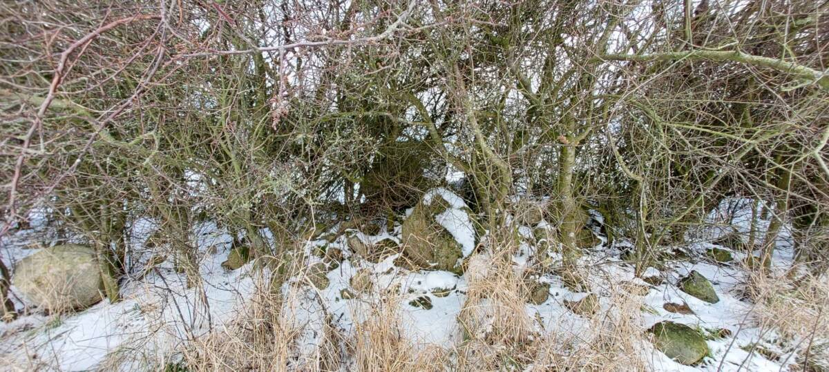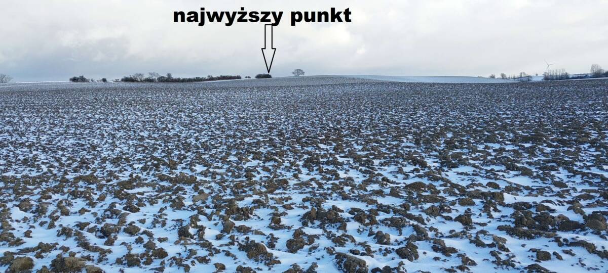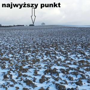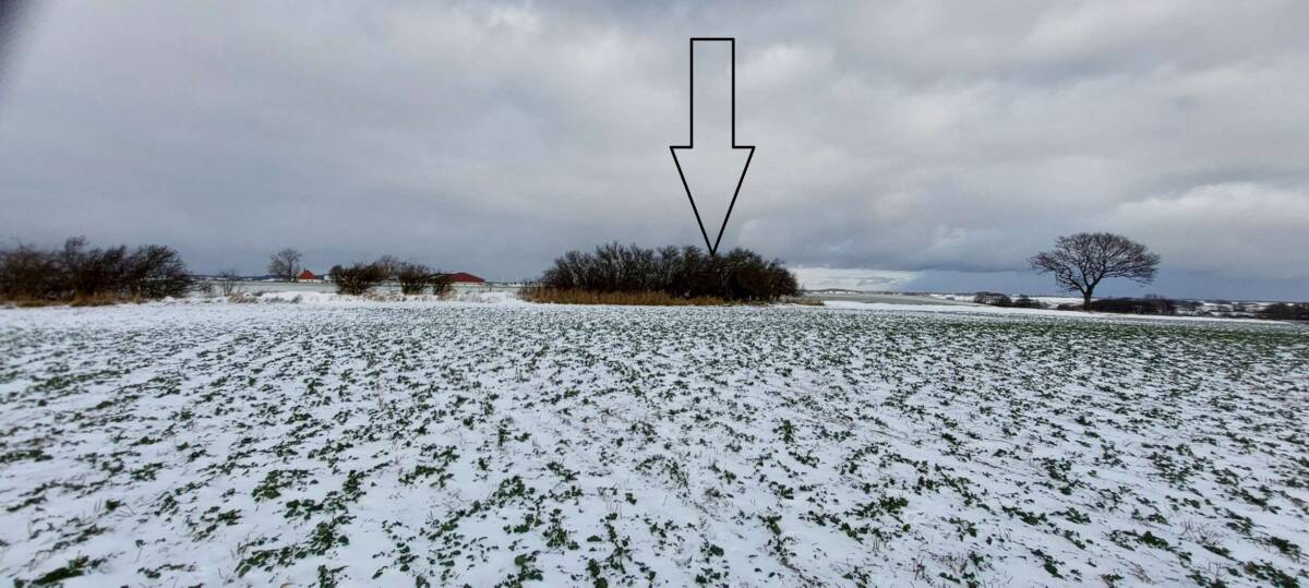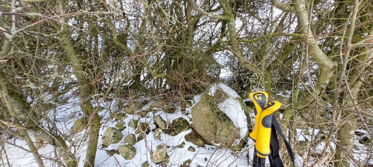 Wybrałem dobry, zimowy czas na zdobycie tego wzniesienia. Aby dotrzeć do najwyższego punktu, trzeba przejść kilkaset metrów przez pole, które bywa błotniste lub porośnięte roślinami uprawnymi. Samochód zaparkowałem przy polnej drodze, około 400 metrów na zachód od pierwszych zabudowań osady Kratten. Poszedłem około 100 metrów w górę tą drogą, a następnie zszedłem z niej w prawo i, idąc przez pole kilkadziesiąt metrów, dotarłem do dużej kępy drzew. Na horyzoncie było już widać mój cel, ale miałem jeszcze do pokonania spory odcinek zaoranego, na szczęście zamarzniętego pola. Gdzieś w połowie drogi okazało się, że zaorane pole ustąpiło miejsca jakiejś uprawie, której liście przebijały się przez śnieg; niemniej teraz szło mi się łatwiej. Doszedłem do tzw. miedzy, porośniętej wysoką, suchą trawą, ciernistymi krzakami i drzewami. W tych zaroślach było widać, że teren jest co najmniej kilkadziesiąt centymetrów wyżej niż obszar uprawny. Na dodatek znajdowało się tam miejsce z hałdą kamieni, a na niej jeszcze dwa duże głazy. Zapewne były to kamienie zebrane z pola, ale wyraźnie dominowały wysokością. Nie mam pojęcia, czy wysokość wzgórza była mierzona od tych głazów; niemniej sama miedza i tak znajdowała się wyżej niż otaczające ją pole.